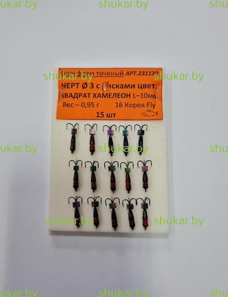 Мормышка вольфрамовая Чертик с рисками квадрат хамелеон 0.95 г.
