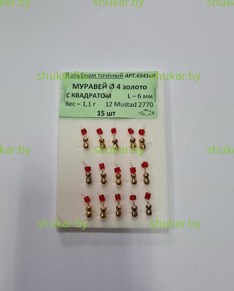 Мормышка вольфрамовая Муравей золото с квадратом 1.1 гр.