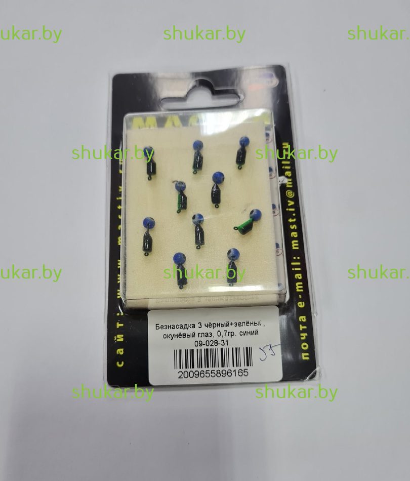 Мормышка вольфрамовая Столбик черный/зеленый окуневый глаз синий 0.7 г.