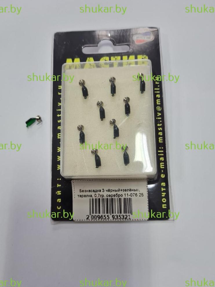 Мормышка вольфрамовая Столбик черный/зеленый тарелка серебро 0.7 г.